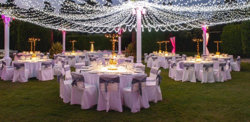 Si la celebración es en exteriores, ¿hay alternativa para el mal tiempo? ¿Disponen de espacio para juegos, castillo hinchable, etc? ¿Hay suficiente iluminación en el exterior para la noche? ¿Tiene escenario para la fiesta y proyector de video? Siempre hay que estar preparados por si el tiempo empeora y tener un plan B , es importantísimo que la iluminación exterior sea la adecuada si queremos celebrar una cena en jardines para no comer en la penumbra. Y por supuesto también debemos estar al tanto de la existencia de un escenario si queremos contratar una banda musical o DJ (al menos una tarima) y de proyector si vamos a mostrar algún vídeo (pre-boda, infancia).