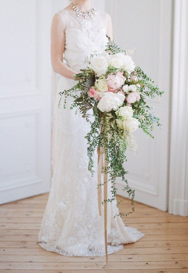 Lo más importante es que el ramo sea proporcionado con la Novia, por lo que para las Novias altas lo ideal es un ramo grande y alargado, en cascada o de tallo largo.