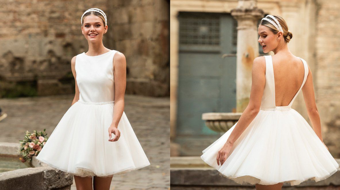 No se olvidan de aquellas novias que quieren celebrarlo de forma íntima y con un look un poco más tendencia, con vestidos de novia cortos, la comodidad en estado puro.